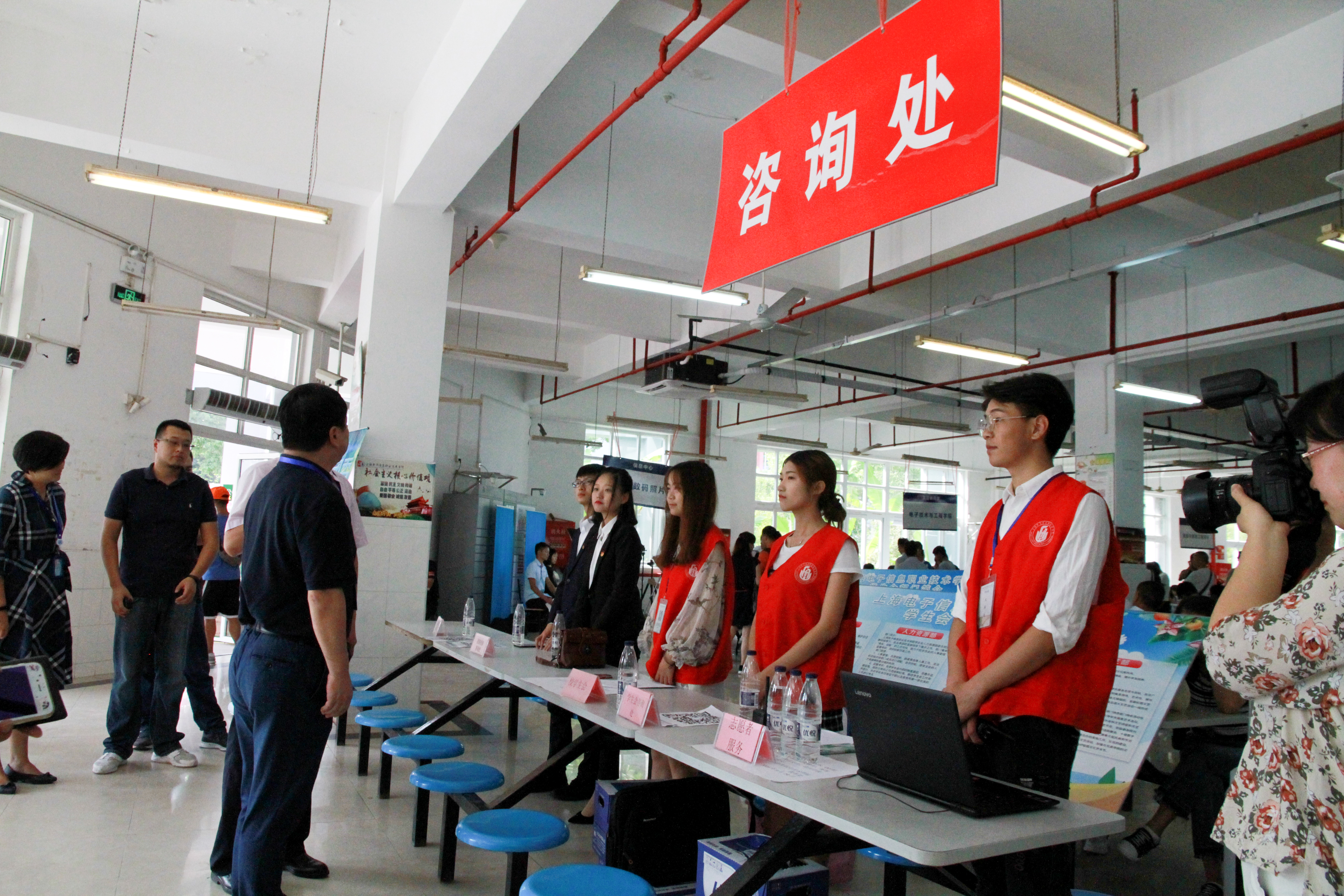 迎新期间,我校团委共派出百余人志愿者,志愿者们不停地穿梭在校道上,热情细心地引导新生完成报到流程,帮助新生搬运行李,并积极介绍校园环境和生活经验。他们在地铁站、生活园区、学生公寓、报道地点、停车场等地设立了新生接待点,完成引导、协助报道、梳理交通、配合各部门各学院开展迎新工作。各职能部门、各二级学院等相关工作人员和志愿者们均以饱满的热情迎接新生和家长,为他们提供优质、高效、全面的服务。上海电子信息职业技术学院党政领导对参与迎新工作的教师以及志愿者致以亲切的问候,对前来报到的新生与学生家长表示诚挚的欢迎与真切的慰问。学校党政领导对我校志愿者工作也进行现场关心和指导,提出服务体现态度,态度决定高度。要守好每一个关口,把握每一个机会。要把迎新工作做好,让学生以及学生家长真切感受到我们的用心。新生都是满怀期待的来,我们要切实做好服务工作,主动把握机会与家长建立沟通的桥梁,保障学生信息登记工作的正确性与必要性。在走访中,大力赞扬了志愿者们精神面貌饱满的服务态度和志愿者服务精神。“奉献、友爱、互助、进步”身上志愿者马甲的颜色,永远是一道亮丽的风景线。