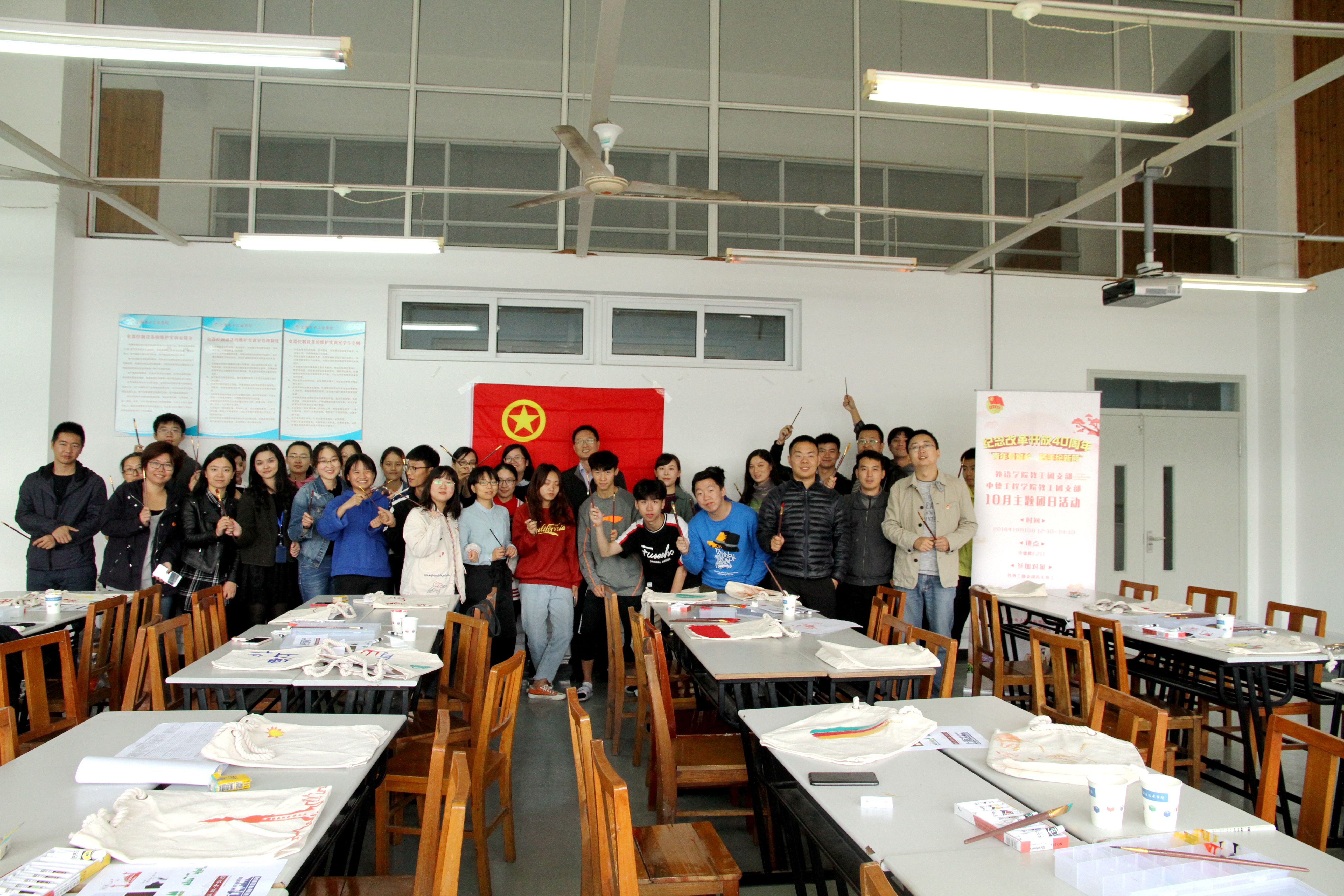 为深入贯彻落实党的十九大精神,弘扬中华民族传统文化,在全校青年教工中营造纪念改革开放40周年的浓厚氛围,坚定“四个自信”,增强共青团组织的凝聚力和吸引力,提升青年教工精神追求,发挥创意。10月19日下午,由校团委主办,外语学院教工团支部、中德工程学院教工团支部承办,在中德楼F211开展“青年看家乡,巧手绘新颜”青年教工主题团日活动。