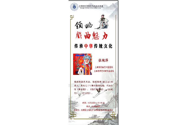 此次活动由校团委主办,有幸邀请到现任上海崔派研究协会会长,上海梨园春艺术团团长张艳萍到我校进行戏剧艺术的演讲,借由此次讲座,将为大学生们展现豫剧表演的精髓,弘扬戏曲文化的魅力。