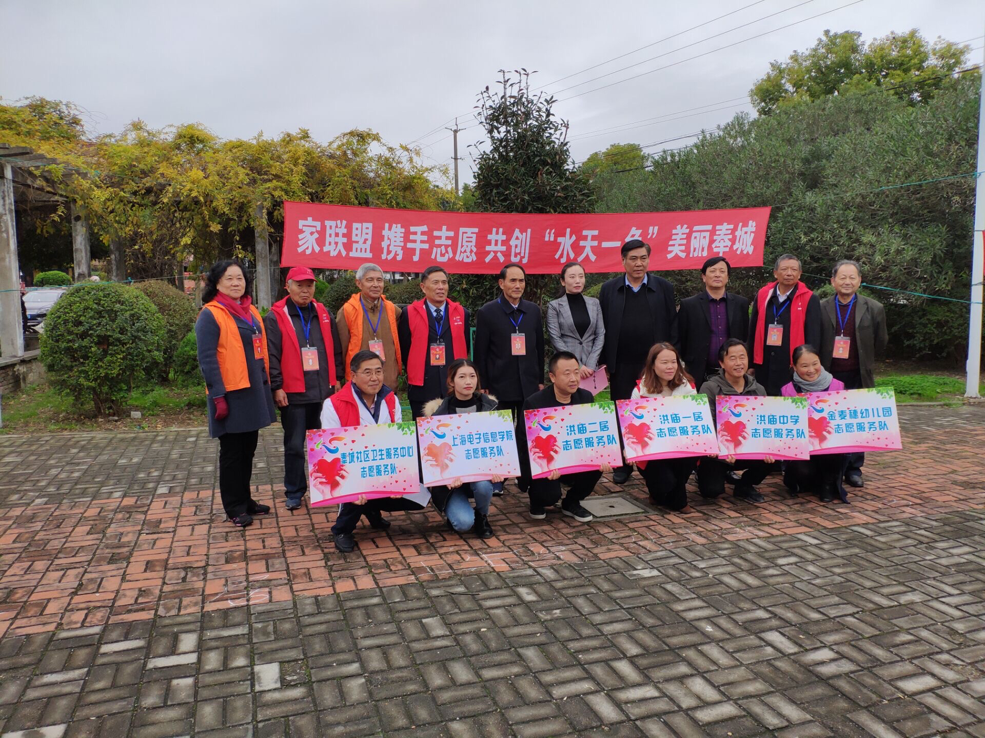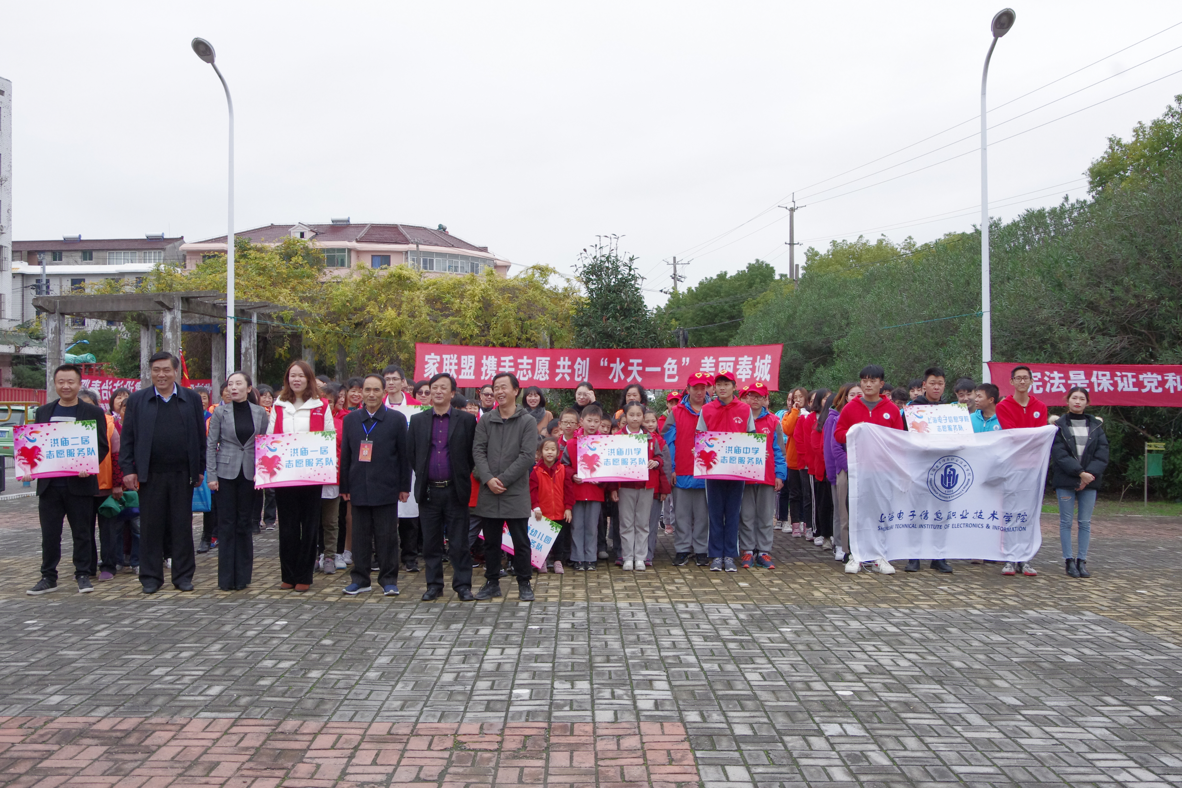 2018年12月5日,我校志愿者服务总队二十余名志愿者前往洪庙参与“家联盟 携手志愿 共创“水天一色”美丽奉城为主题的誓师大会活动,在本次活动中共有六支志愿服务队参与,分别为金麦穗幼儿园服务队、洪庙中学服务队、洪庙一居服务队、洪庙二居服务队、奉城社区卫生服务中心服务队以及我校志愿者服务总队;在本次誓师大会活动中,奉贤区奉城镇党委副书记李丹、洪庙社区党总支书记季金荣、奉城镇卫生服务中心范金华及洪庙中学工会主席严小平出席了本次活动,为了构建美丽奉城,创建和谐家园,奉城镇各级领导共同号召志愿者们要提高志愿者“奉献、友爱、互助、进步”的志愿精神,同时要强化社会责任意识和志愿者奉献意识。