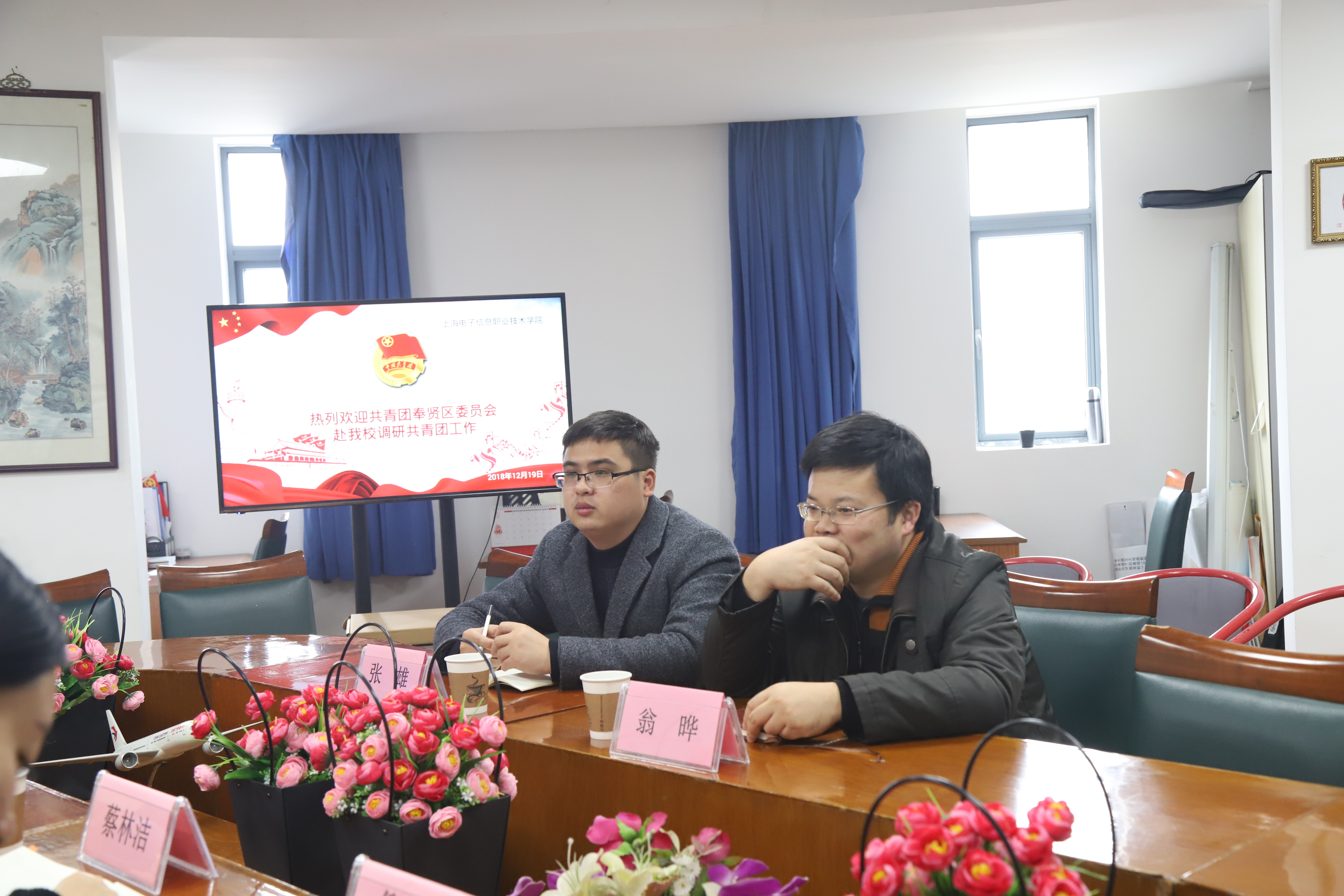 2018年12月19日下午,奉贤区团区委副书记翁晔一行赴我校调研共青团工作,双方在我校w楼211会议室召开交流座谈会。校团委书记蔡林洁、校团委副书记何川负责接待。出席会议的还有,奉城镇团委书记张雄,校团委办公室主任兼组织部部长倪娜。