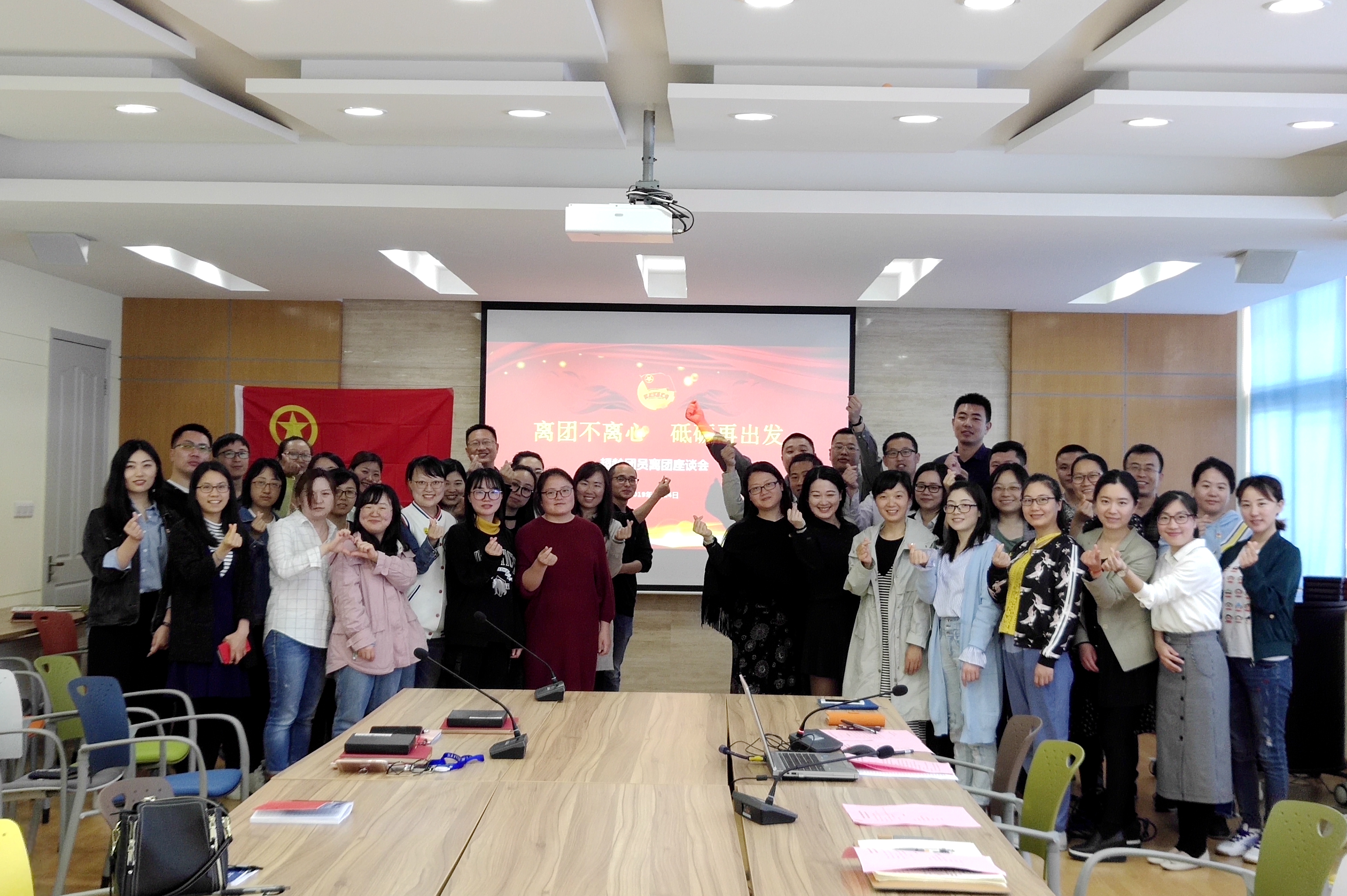 为更好的团结和凝聚青年力量,有效促进青年教职工的交流合作,增强组织的凝聚力、向心力、战斗力,推动新时期、新形势下我校的发展。校团委于4月24日召开“离团不离心 砥砺再出发”超龄团员离团座谈会。在鲜艳的团旗下,综合管理教工团支部书记吴奇峰带领全体参会人员重温了入团誓词。会上,团委办公室主任、组织部长倪娜宣读超龄团员离团决定,其中4位老师代表超龄离团团员发言,表达了对团组织的感谢,分享了入团多年来在共青团的成长体会,并结合工作岗位,对作为一名青年教师如何继续履行自己的义务,发挥自己的优势,为新时期学校的发展贡献力量进行了发言。纷纷表示离团后将继续关心和支持共青团工作,积极参加团的活动,做到“离团不离心”。在接下来举行的离团仪式上,校团委书记蔡林洁为超龄团员摘下团徽,为超龄团员送上祝福。
