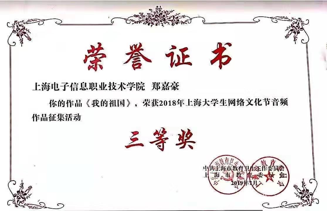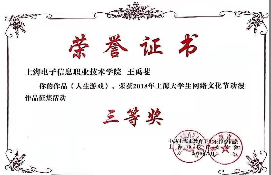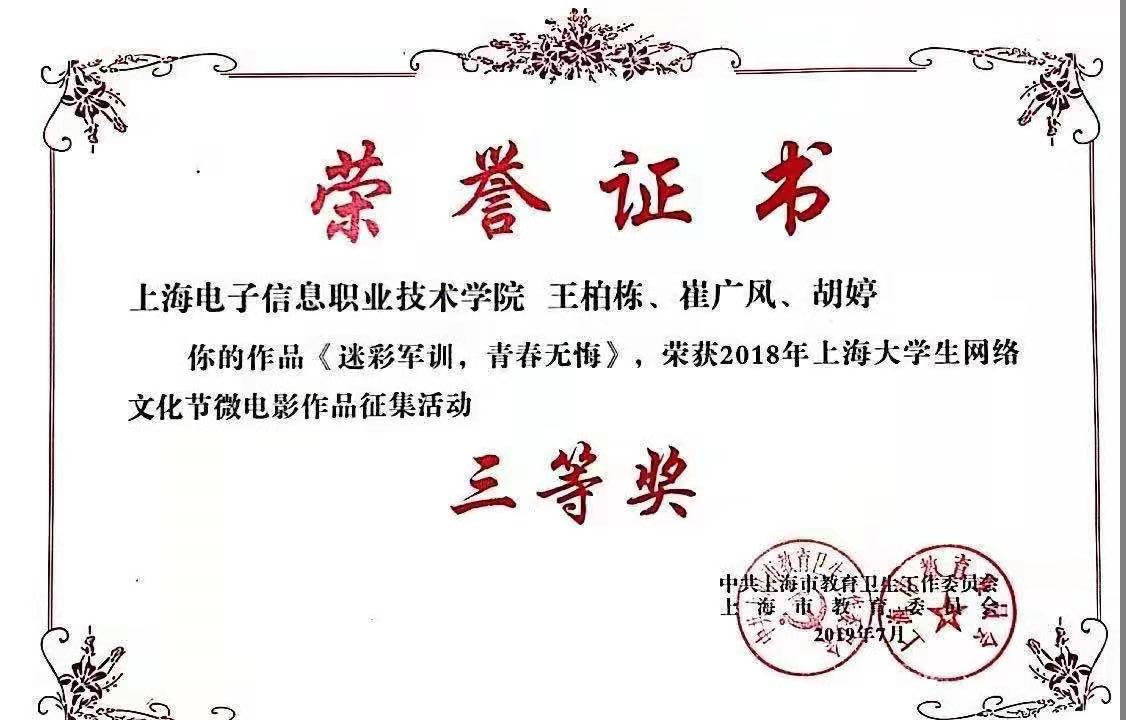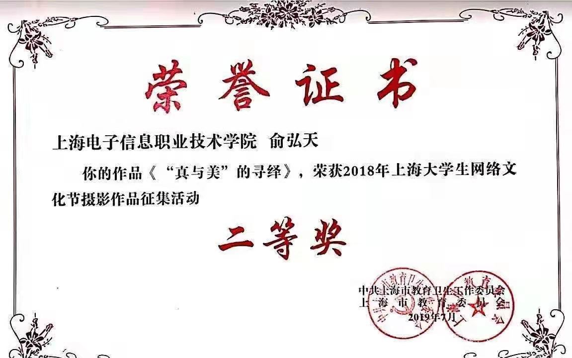在2018年“上海大学生网络文化节”中,我校经济与管理学院刘玉森同学作品《筑梦青春 砥砺前行》、通信与信息工程学院俞弘天同学作品《“真与美”的寻绎》荣获2018年“上海大学生网络文化节”二等奖;恭喜中德工程学院郑嘉豪同学作品《我的祖国》、通信与信息工程学院孔斌同学作品《爱我校园》、机械与设计学院王禹斐同学作品《人生游戏》、通信与信息工程学院王柏栋同学、胡婷和崔广凤老师共同作品《迷彩军训,青春无悔》荣获2018年“上海大学生网络文化节”三等奖;恭喜陈真老师荣获2018年“上海高校网络教育优秀作品推选展示活动”三等奖。