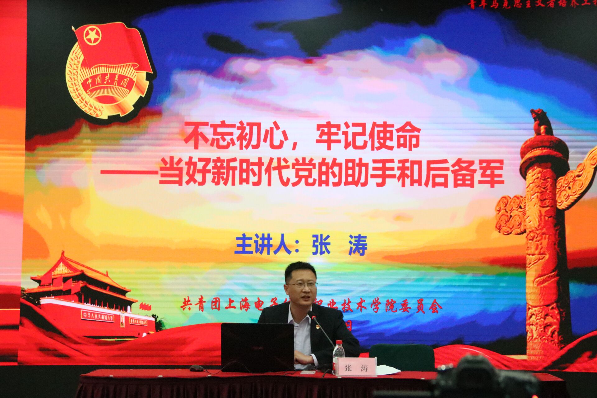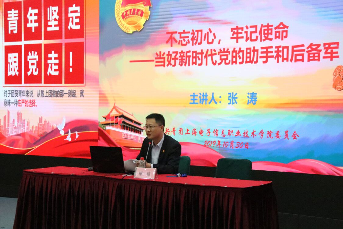 为全面贯彻落实党的十九大精神,深入学习习近平新时代中国特色社会主义思想,学习宣传团的十八大重要内容,推进中国特色社会主义理论和习近平总书记系列重要讲话精神进团课,根据学校党委“不忘初心、牢记使命”主题教育实施方案安排及2019年青年马克思主义者培养工程暨团校培训计划, 10月30日下午,校党委副书记、副校长张涛应邀在中德C楼108报告厅为2019年青马工程学员作《“不忘初心、牢记使命——当好新时代党的助手和后备军”》主题团课。