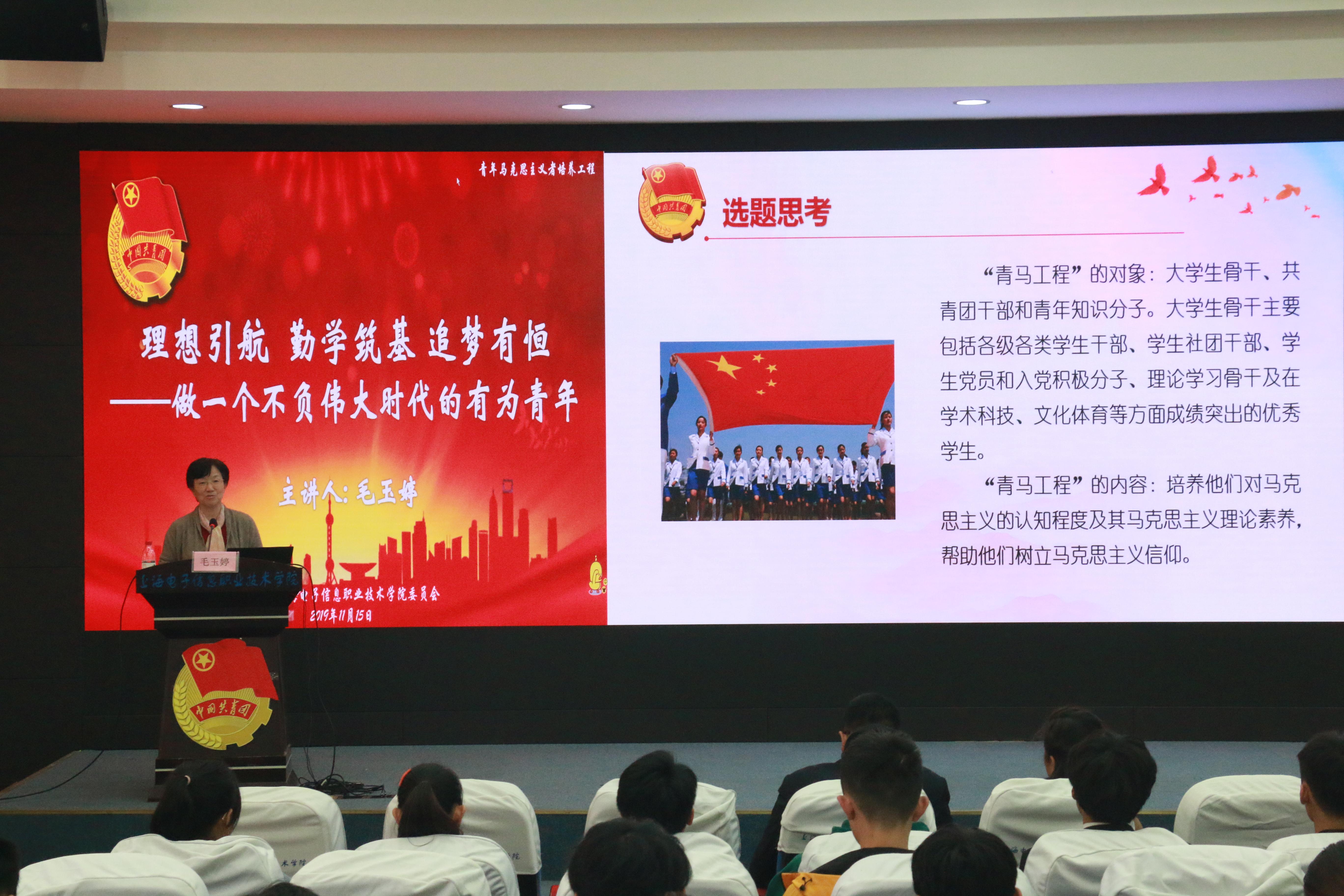 为进一步推进中国特色社会主义理论和习近平总书记系列讲话精神进团课,紧紧依靠党建带团建,牢牢把握育人的主线,使青年团员成长为中国特色社会主义事业合格的建设者和可靠的接班人。11月15日中午,校党委副书记、纪委书记毛玉婷应邀在中德楼C108报告厅为2019年青年马克思主义者培养工程的大骨班及活力班学员作《理想引航 勤学筑基 追梦有恒——做一个不负伟大时代的有为青年》主题团课。