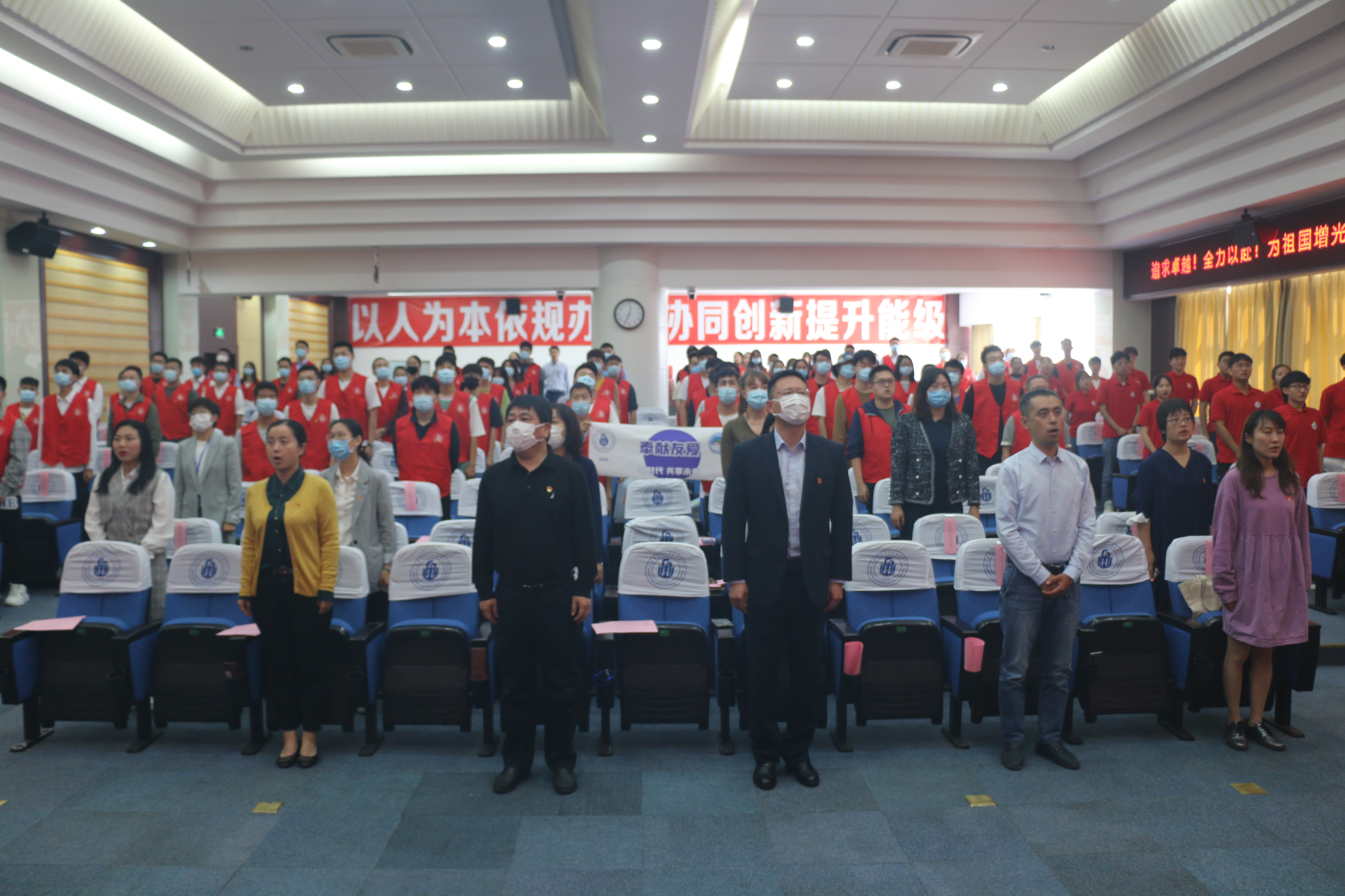 随后,校党委副书记、副校长张涛为本届进博会志愿服务队授旗。全体志愿者在校团委滕崧老师的带领下,进行了庄重的志愿者宣誓。