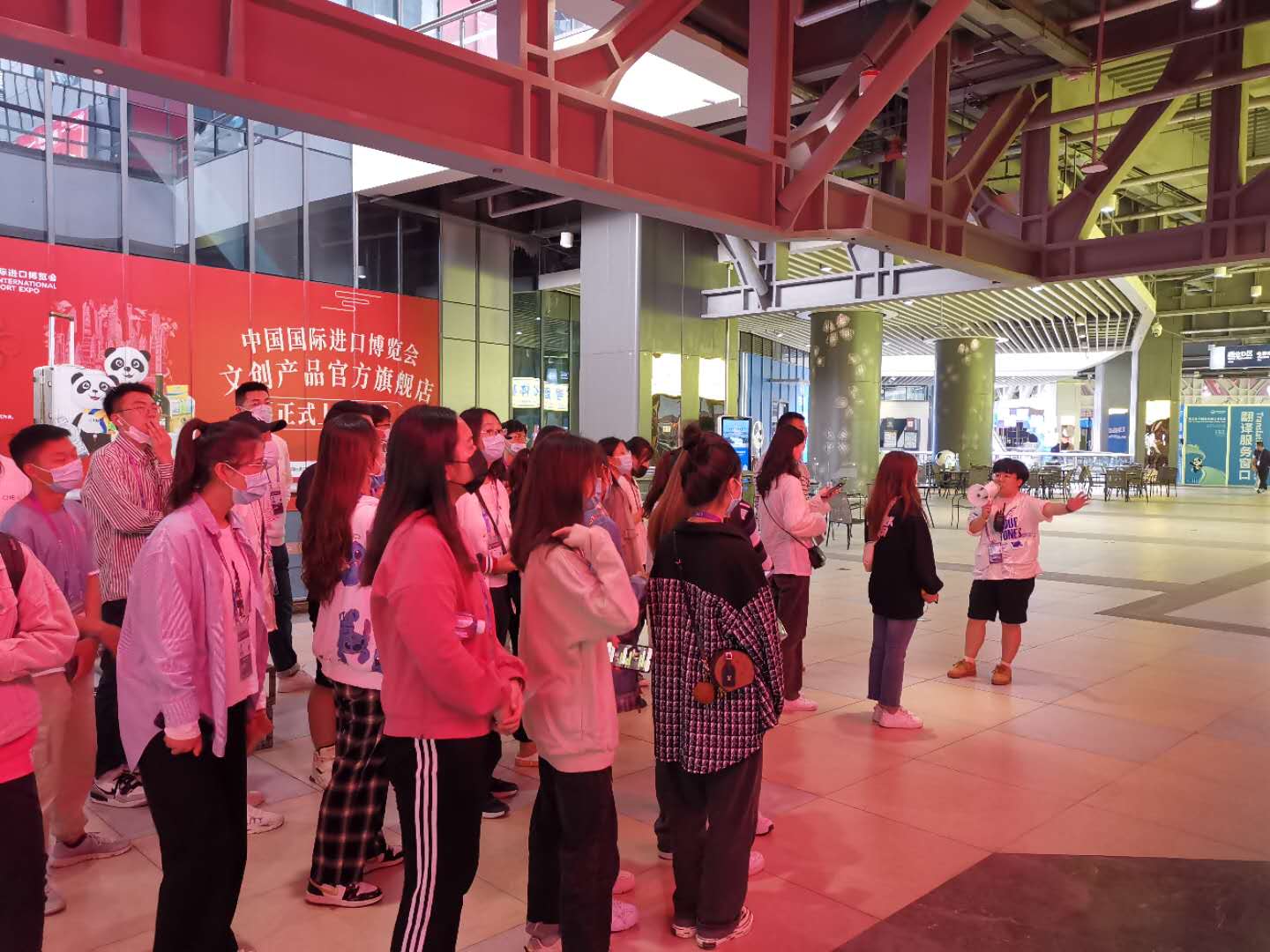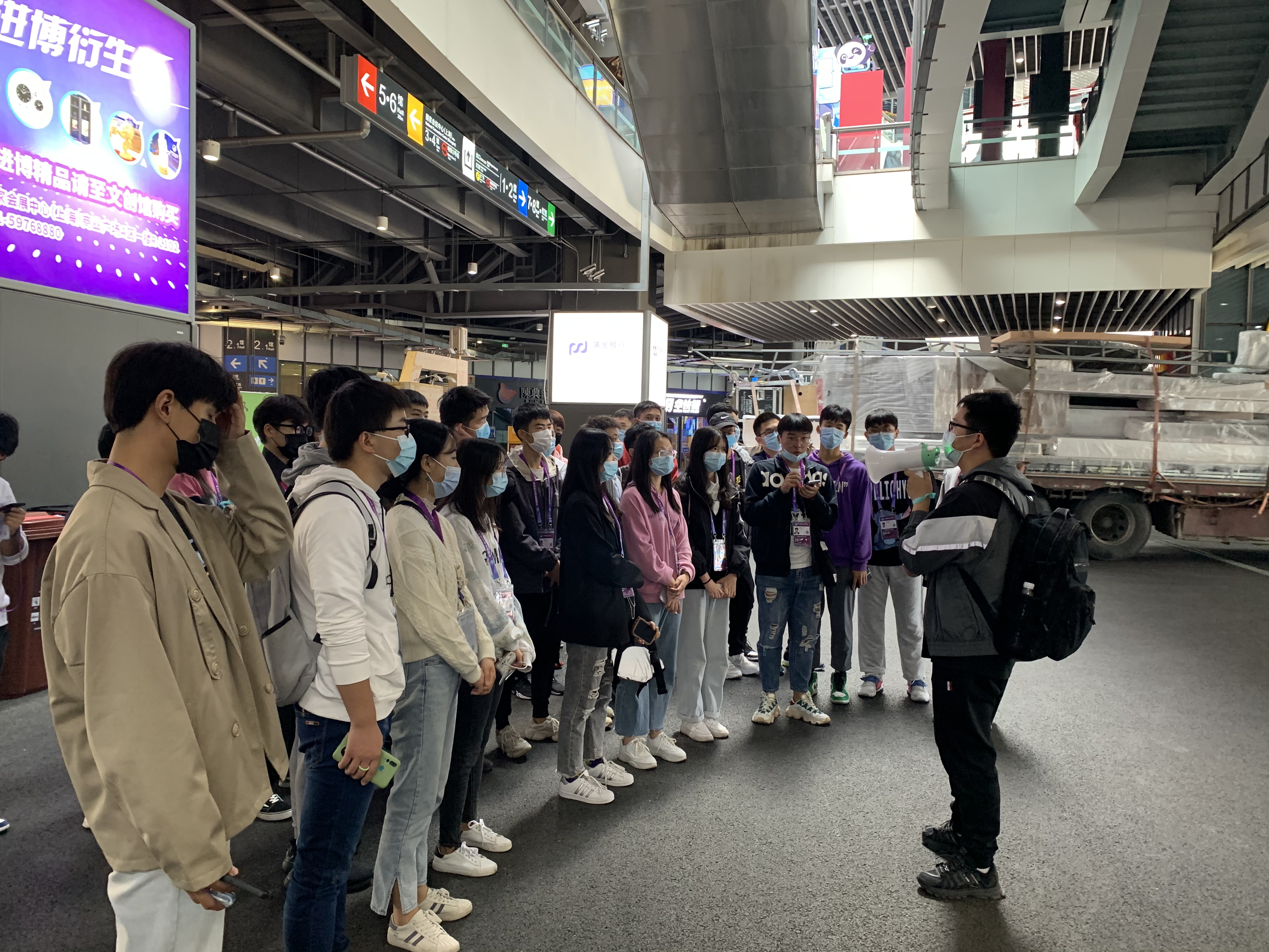 志愿者们在老师的带领下依次巡馆。16m层主要是各展览馆以及国家会议中心,而商业区与许多餐馆则均匀分布在三层中。随后,老师介绍了馆号命名,解答了同学们一个又一个的问题,使志愿者们更好更全面的了解进博会场。