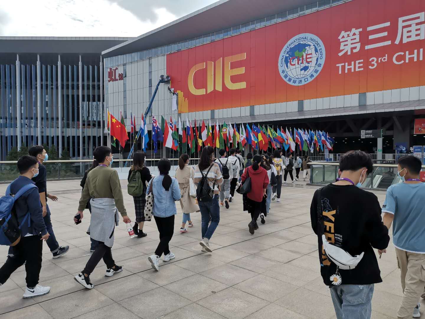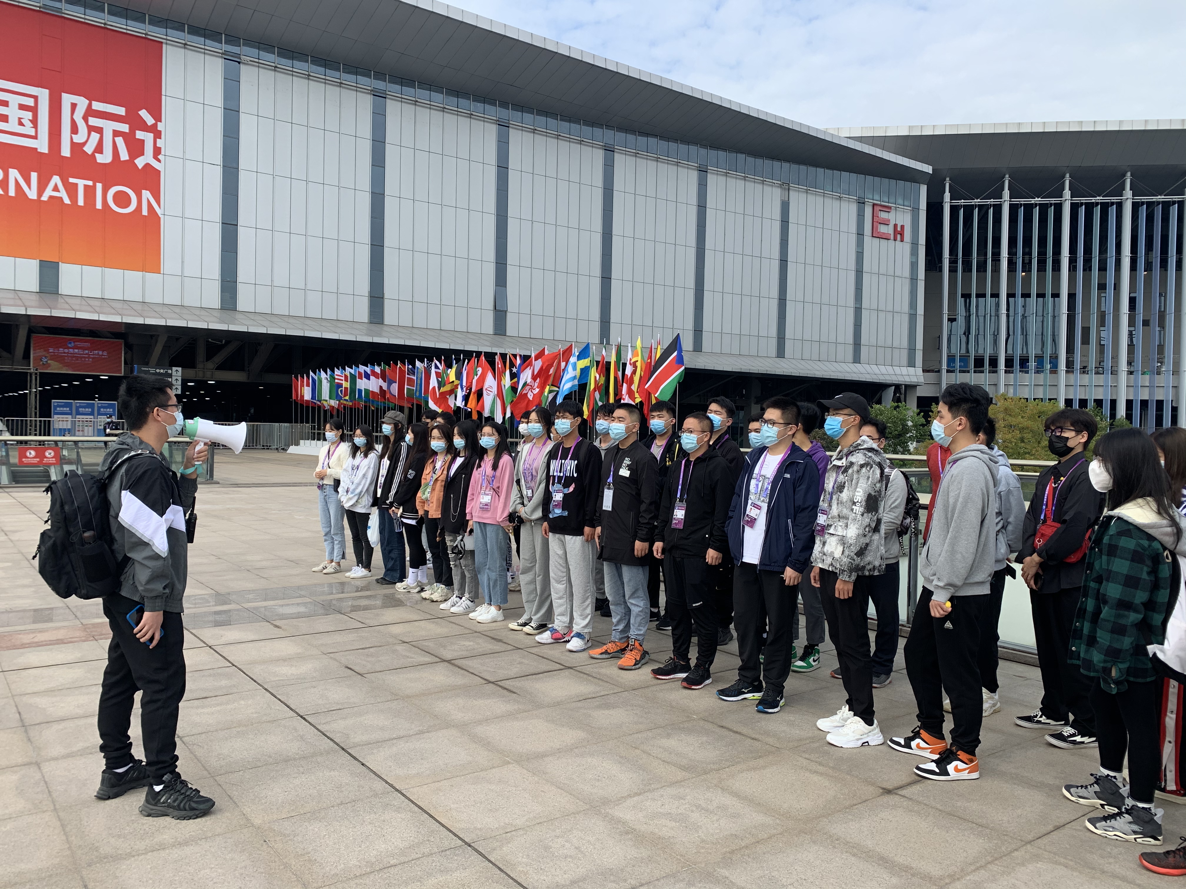2020年10月27日,我校110名第三届中国国际进口博览会志愿者分批从学校出发前往国家会展中心(上海)进行巡馆培训。