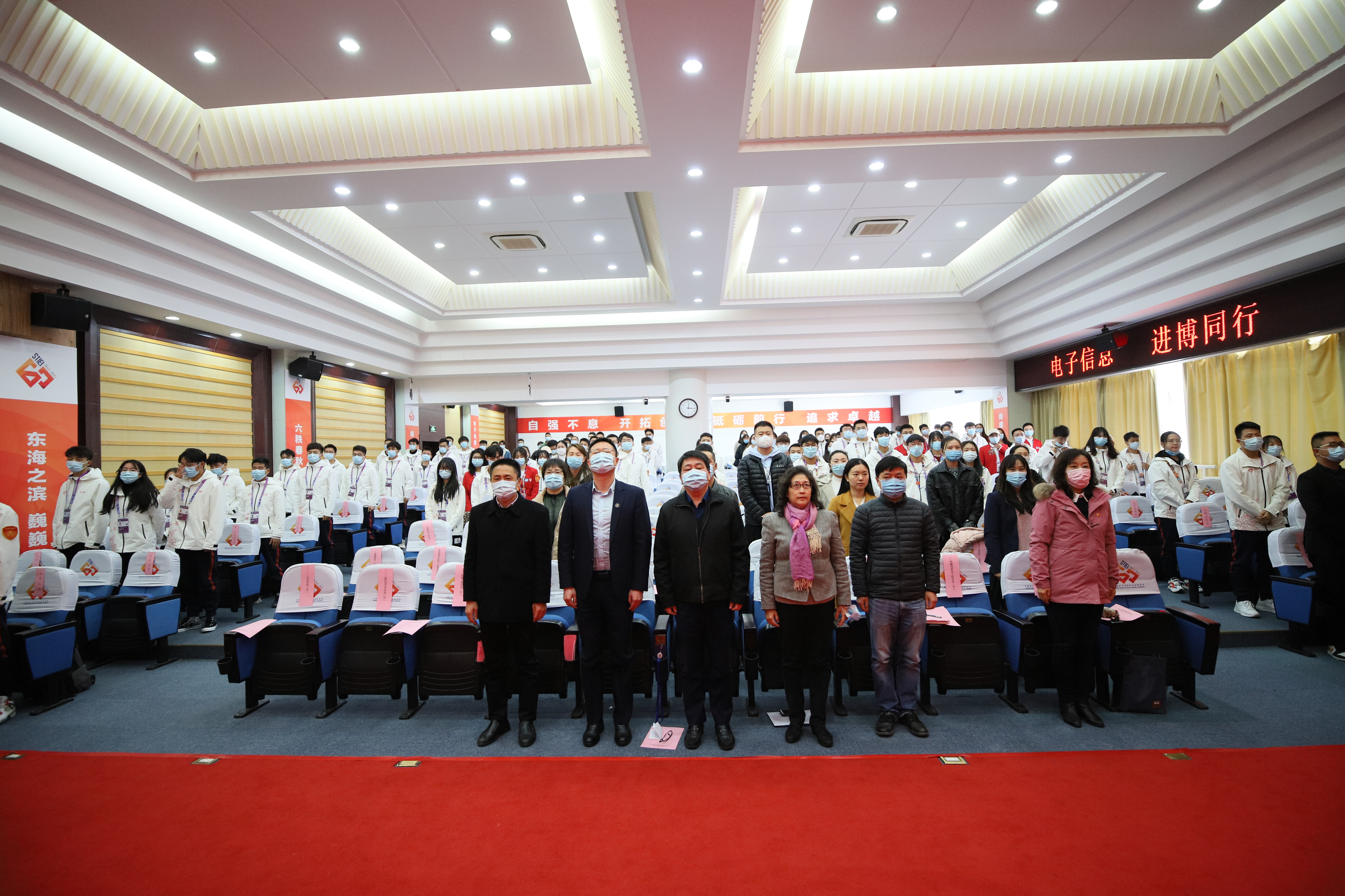 最后,学校党委书记田钦在大会上发表讲话,他指出,我校110名“小叶子”首次亮相进博,展现出多元的电子信息学子风采,交出了一份成绩斐然的青春答卷。电子信息“小叶子”们甘当绿叶的精神和勇于奉献的责任意识,凸现“尚德修能,知行合一”的校训,为全体小叶子点赞。同时他也对全体同学提出两点希望:一是希望我们从历史文化中涵养气度、拓展气度,认真学习“四史”。在历史中汲取精神力量、汲取经验智慧、汲取坚守人民立场的定力,提高文化修养和思想素质,真正成为德才兼备的人才。二是希望我们继续保持进博会志愿服务期间的活力,珍惜大学学习机会,努力打牢知识基础,培养严谨学风,继续拓展世界眼光,学习各种新知识新技能,使自己的知识结构适应时代的要求,不断增强为国家和人民服务的本领,成为中华民族接班人,努力为实现中国梦而奋斗,为两个“一百年”奋斗目标而努力。