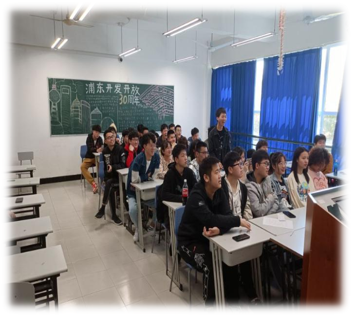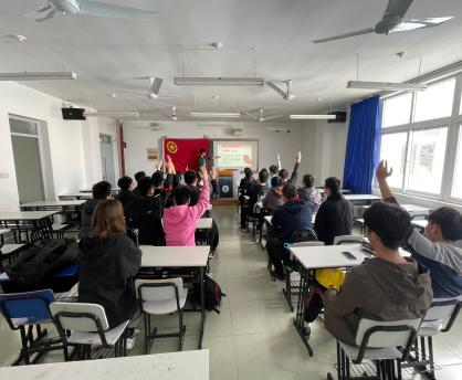 期间潘璐毅同学问到:“我们为什么要跟党走?能从中学习到什么?”台下同学踊跃举手,其中戴鑫同学回答:“党的最大政治优势是密切联系群众,最大危险是脱离群众。我们的党,历经百年风风雨雨,始终不变的是全心全意为人民服务的宗旨,在她的旗帜下,涌现出许许多多优秀的中华儿女,前赴后继,为中华之强盛而奉献青春和生命。”