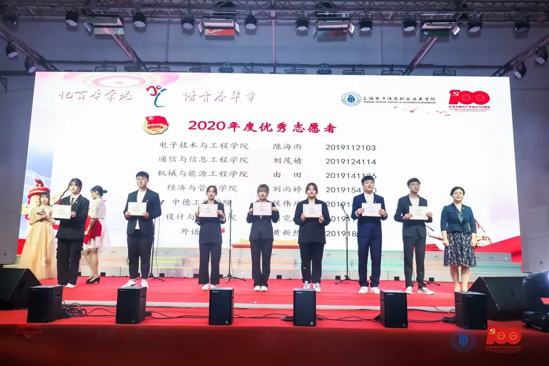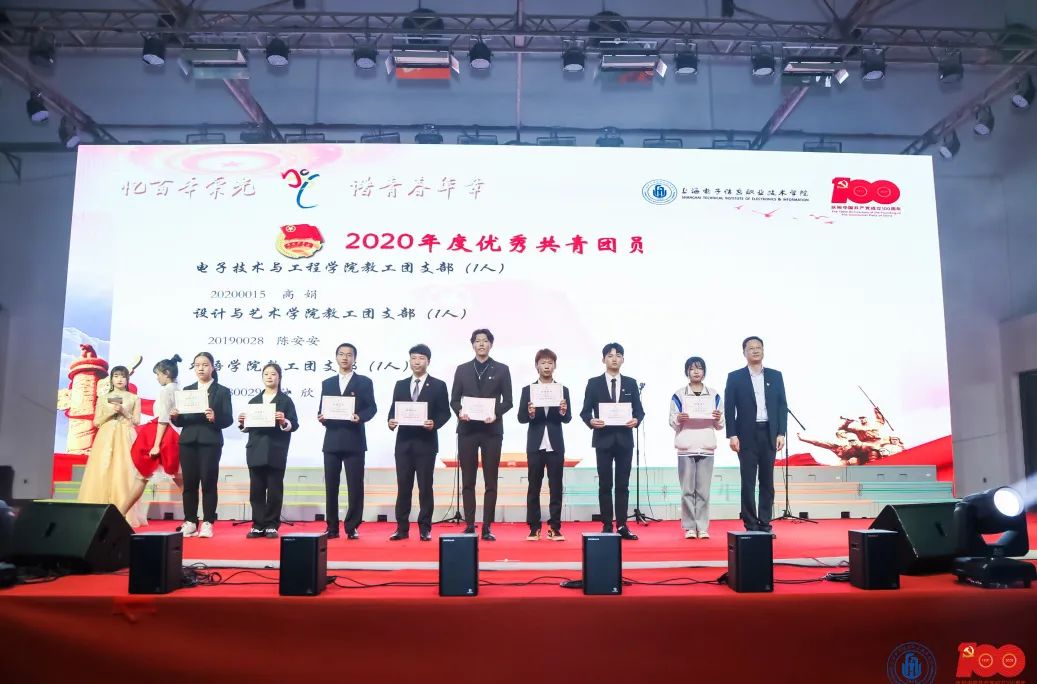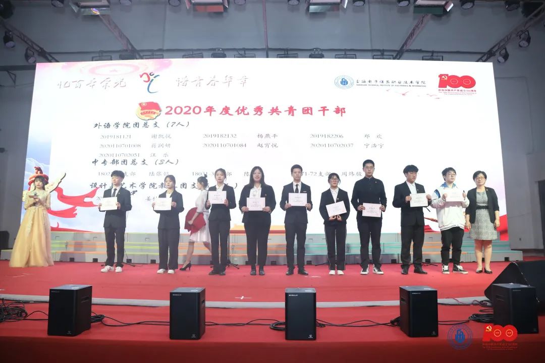 校领导分别对2020年度先进团支部、2020年度优秀共青团干部、2020年度优秀共青团员、2020年度优秀学生干部、2020年度艺术先进个人、2020年度优秀志愿者、“第二课堂成绩单”学院之星、“第二课堂成绩单”部落之星进行颁奖。
