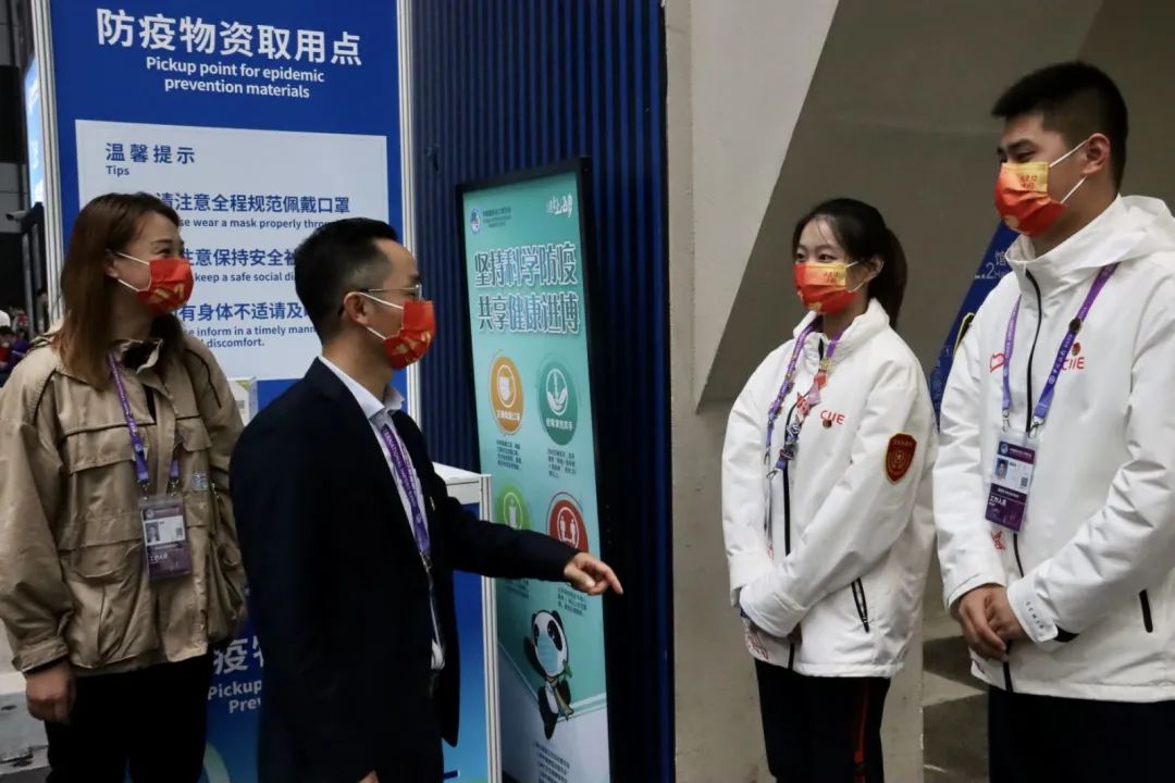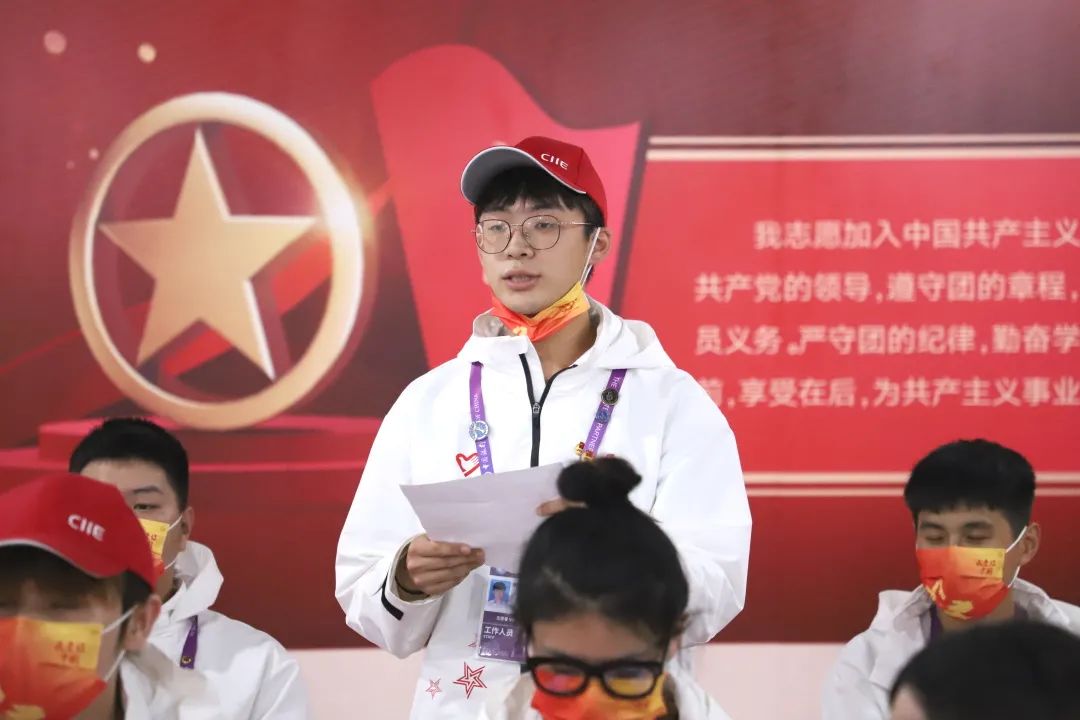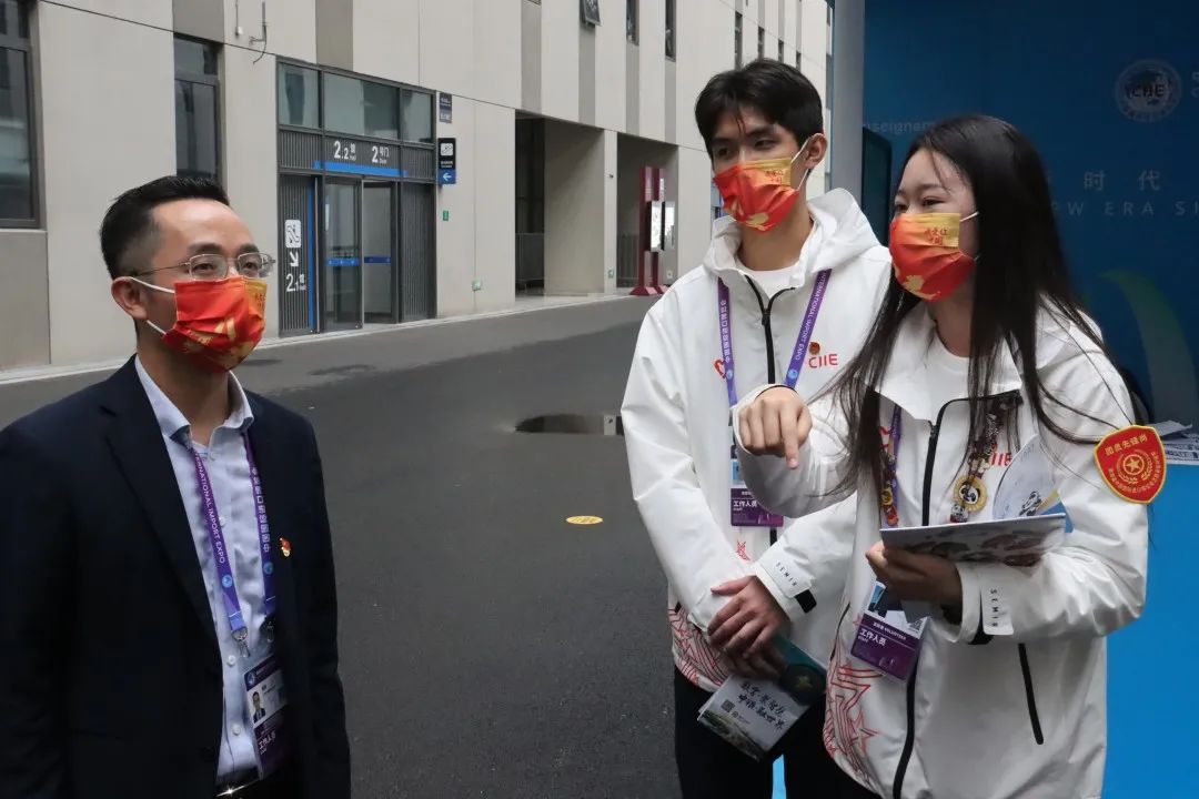 通信与信息工程学院董郑磊同学作为志愿者服务学生负责人介绍了本次进博会志愿者岗位概况。
