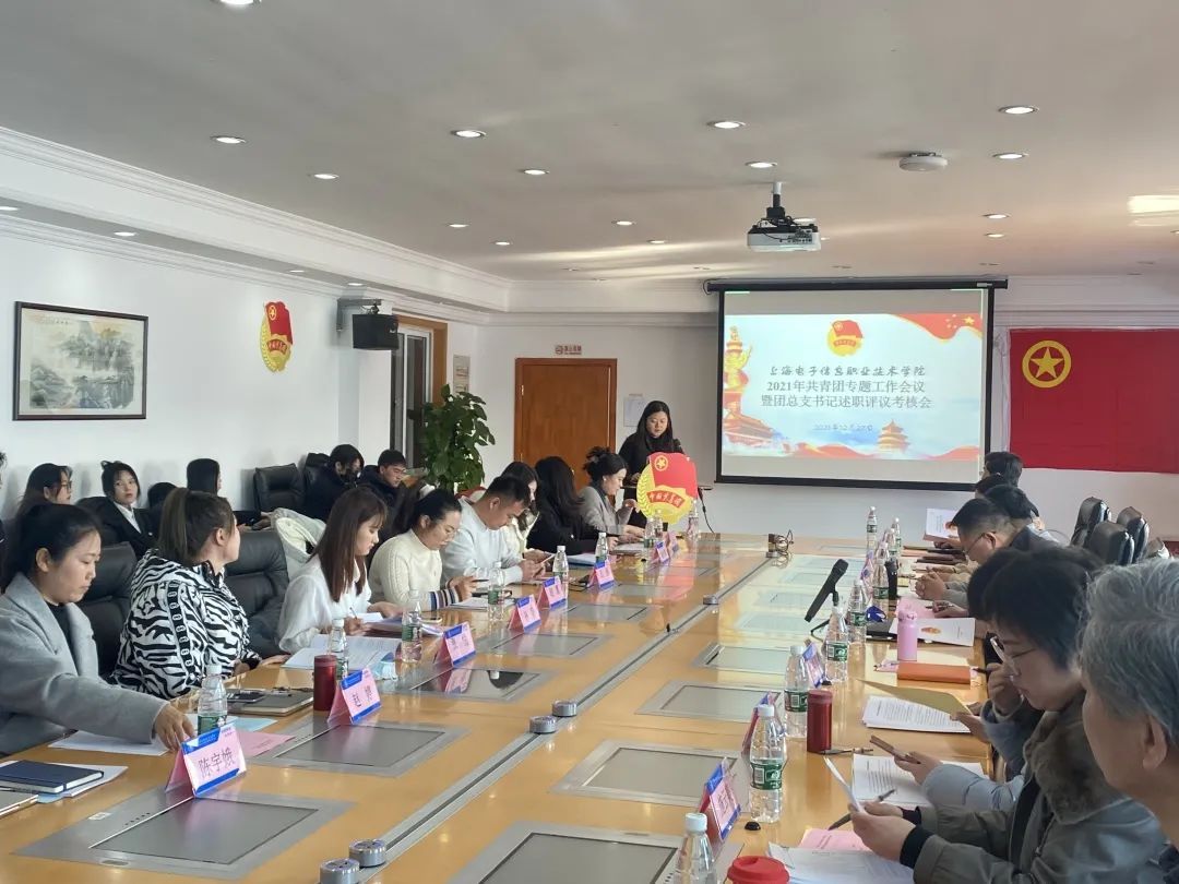 为深入学习宣传贯彻习近平新时代中国特色社会主义思想,学习贯彻党的十九大和十九届二中、三中、四中、五中、六中全会精神,深入学习贯彻习近平总书记“七一”重要讲话精神和关于青年工作的重要思想,着力提升学校共青团的组织力、引领力、服务力和大局贡献度,根据《关于印发<基层团组织书记述职评议考核暂行办法>的通知》(团组字〔2021〕1)有关精神,进一步推进《上海电子信息职业技术学院共青团改革实施方案》,将从严治团的有关要求落到实处,进一步加强团学干部队伍建设,全面、客观、公正地评价各团总书记(负责人)工作业绩。2021年12月27日,校团委召开共青团专题工作会议暨团总支书记述职评议考核会。