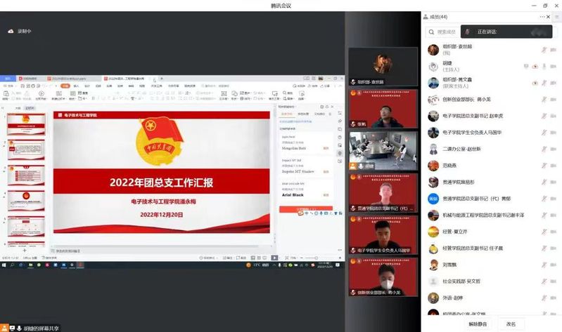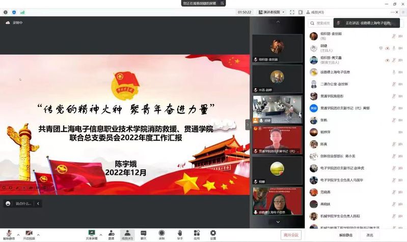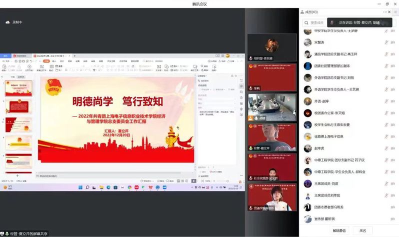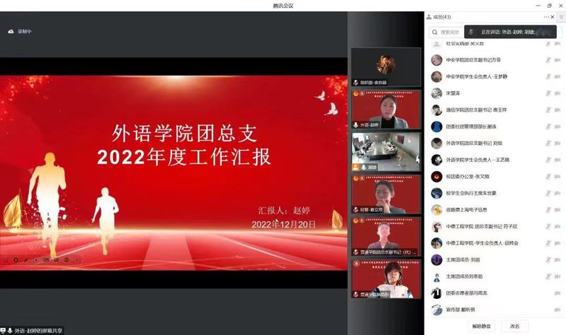 2022年12月20日,校团委召开共青团专题工作会议暨团总支书记述职评议考核会,出席本次会议的有学院党委副书记、副院长张涛、各二级学院学生工作分管领导、校团委、各团总支书记(负责人)及团学骨干代表。会议由学院团委书记蔡林洁主持。