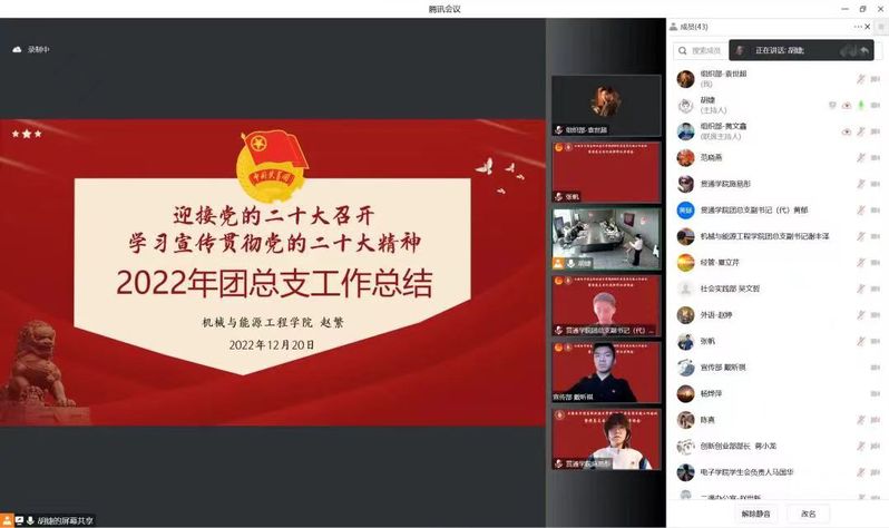 张涛副书记总结:今年是意义非凡的一年,明年我们学校共青团要继续紧紧围绕立德树人根本任务,以学习宣传贯彻党的二十大精神为抓手,持续提升共青团组织的青年政治引领作用;牢牢把握围绕中心服务大局的根本要求,团结带领广大青年为学校创建职业本科做贡献;深入学习习近平总书记关于青年工作的重要思想和讲话精神,落实到共青团各项工作中,进一步凝聚团员力量,抓牢基层组织建设;提振精神,不断进取,努力提高共青团干部工作水平。