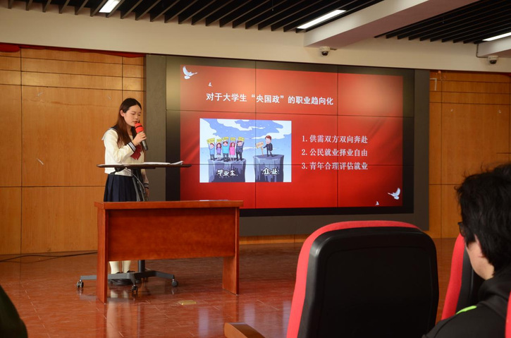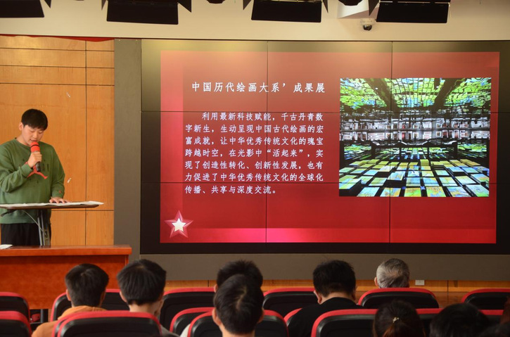随后,文思木铎社理论宣讲团的周韦、王雨生、倪辰瑶三位学生宣讲员围绕着党的二十大精神开展宣讲,他们分别带来了《文化兴则国运兴文化强则民族强》、《中国式现代化——人与自然和谐共生》、《珍惜韶华奋发有为》三场宣讲。宣讲者将见闻与经历融入二十大主题宣讲中,他们既是讲述者,也是见证者,更是亲历者。