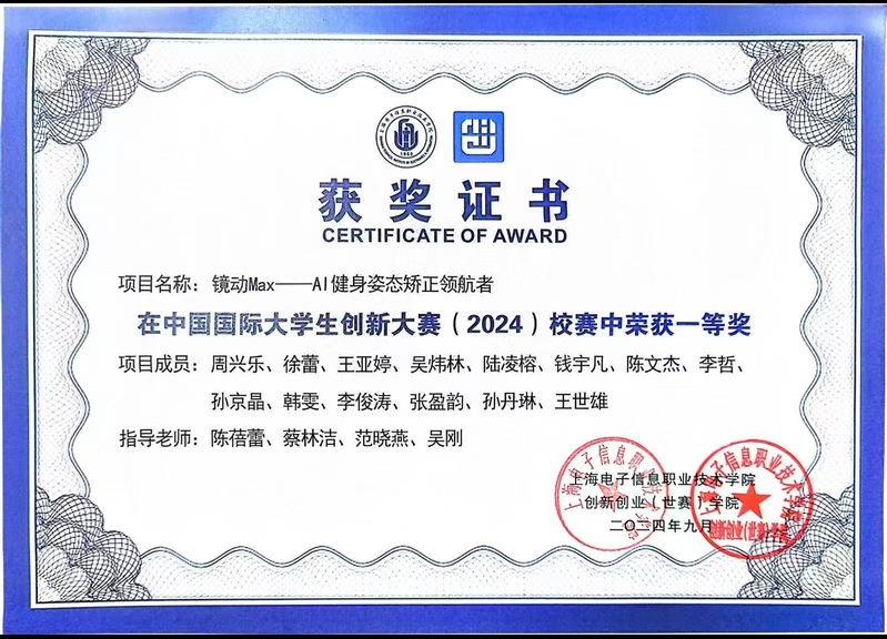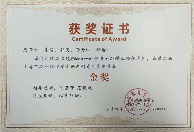作为学校“第二课堂”育人体系的重要平台,创新创业社在陈蓓蕾老师的悉心指导下,构建了“思维创新—能力进阶—成果转化”三阶培养体系,积极探索“作业—作品—产品”的转化路径。社团聚焦大健康领域,成功研发“集成多种功能的智能健身镜系统”。该产品融合AI算法、十点触控交互等前沿技术,实现了智能健身指导、健康监测与娱乐功能的一体化创新,已荣获2025年中国国际大学生创新大赛金奖等多项荣誉,并进入国家发明专利受理阶段。