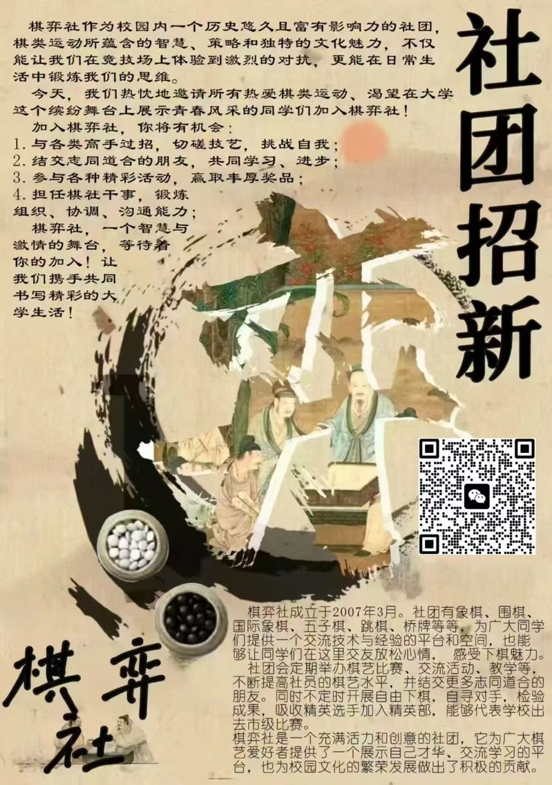 1.具有对棋类活动或棋艺文化的热情,愿意投入时间学习与交流。