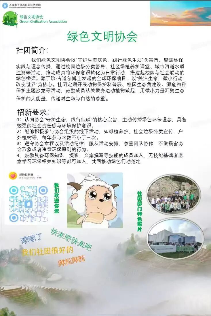 社团简介:我们是为绿色梦想而行动的实践者联盟!以“践行生态文明,传递绿色力量”为宗旨,聚焦环保倡导、低碳实践与可持续发展,致力于在校园内外推动绿色生活方式的普及。无论你是环保先锋还是生态小白,这里都有你发光发热的舞台!