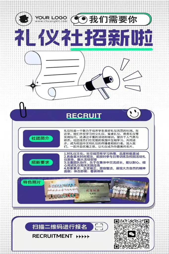 我们是以“传承礼仪文化,塑造优雅气质”为宗旨的实践型社团。专注于提升成员的仪态修养、社交能力与职业素养,通过系统训练与实践展示,培养内外兼修的新时代青年。在这里,优雅不仅是外在姿态,更是内在修养的自然流露。加入我们,在礼仪文化的熏陶中遇见更美好的自己,用自信与得体展现青春最美的模样!